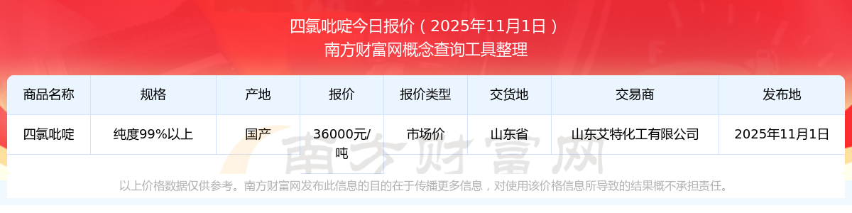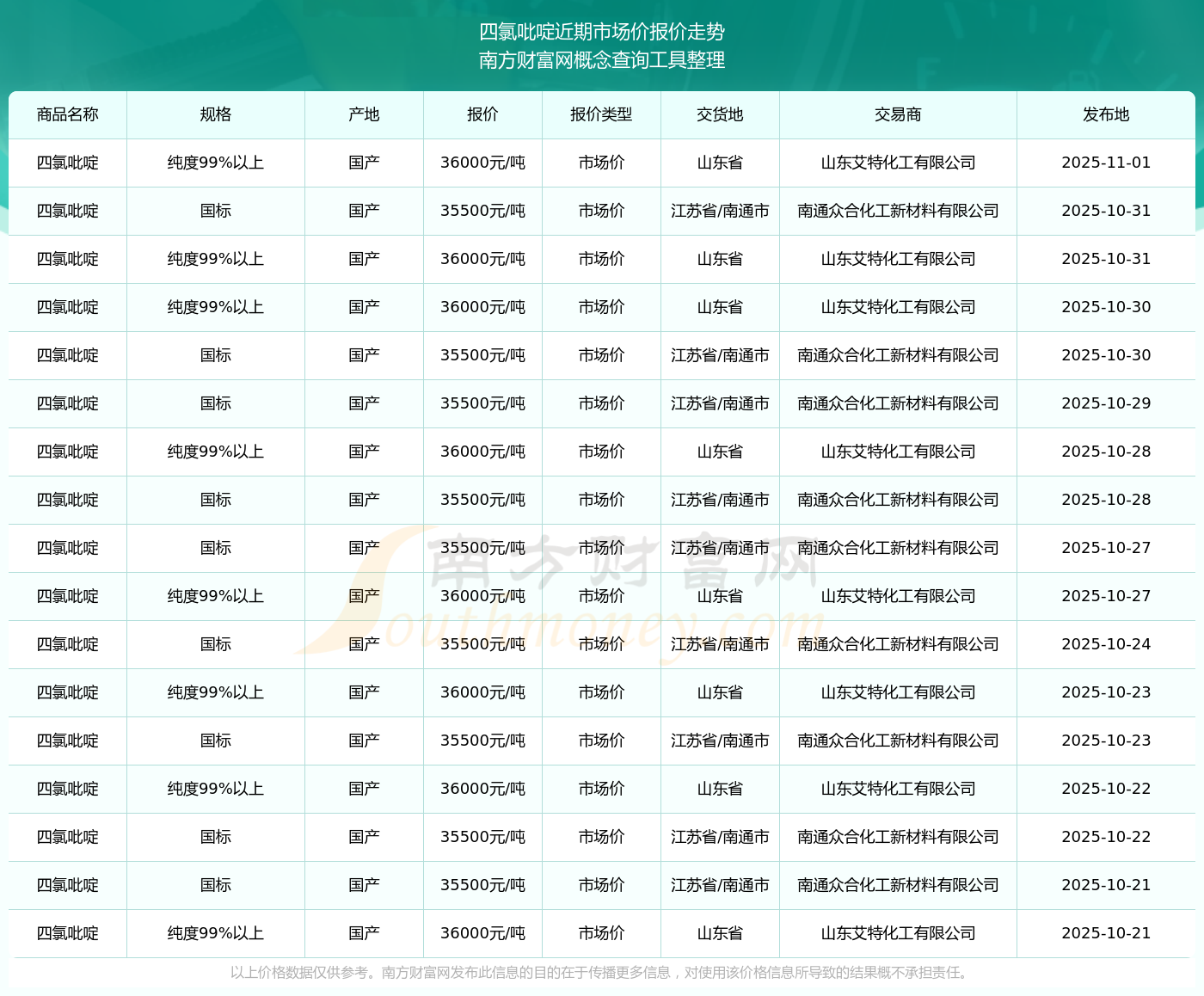 2025年11月1日溴硝醇出厂价报价动态及近期出厂价报价走势
